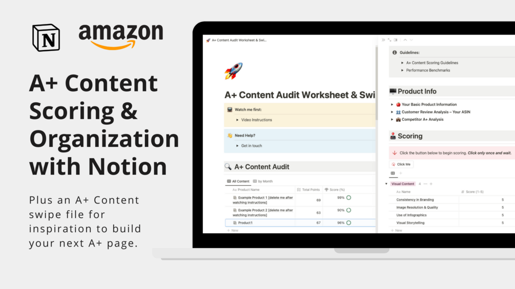 This Worksheet is organized as a Notion database and it dives deep into your A+ Content, identifying areas for improvement.